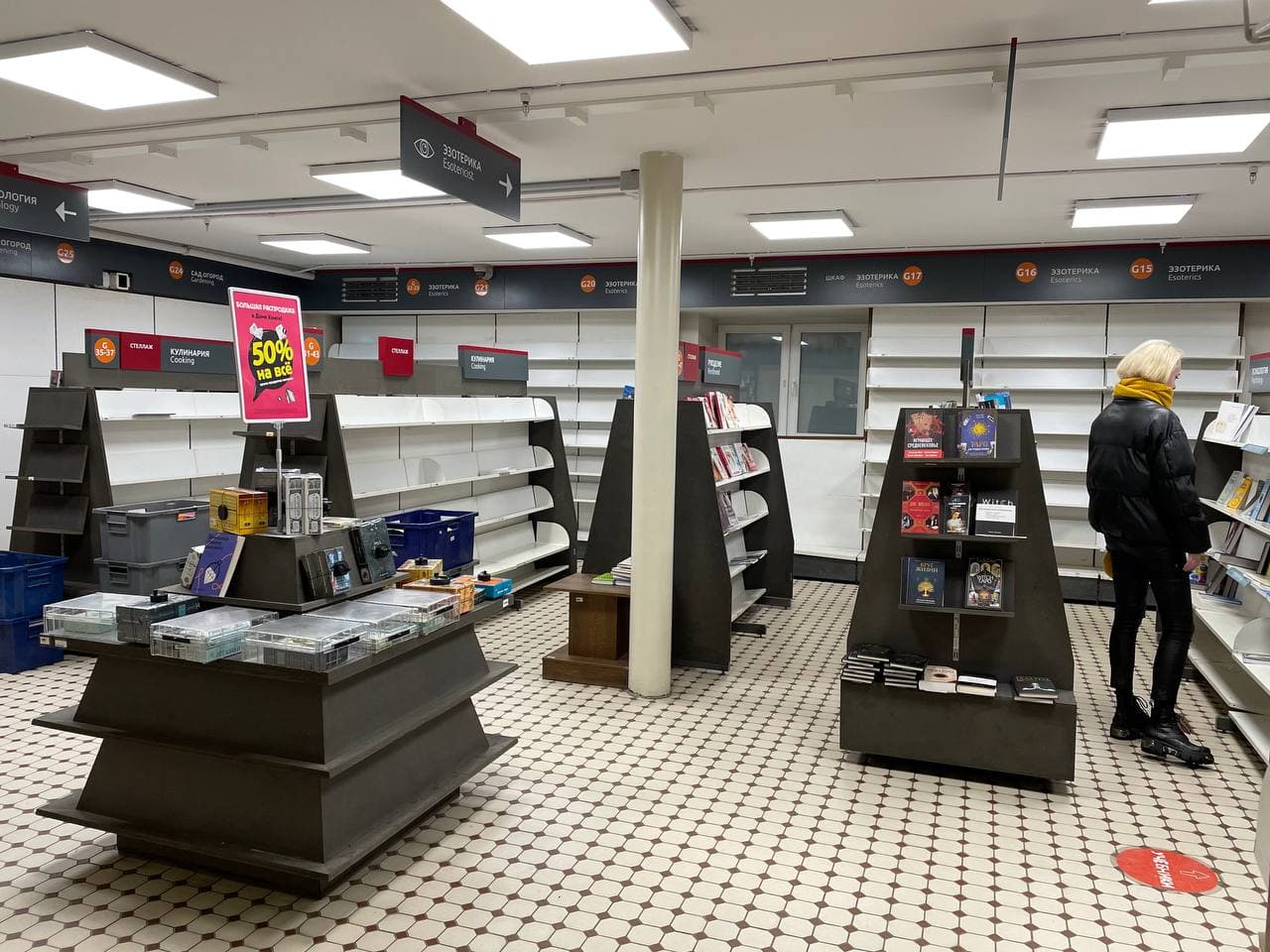 Полки в «Доме книги» опустели, оставшийся ассортимент распродают со скидкой 50 %. Магазин покидает дом Зингера из-за конфликта с собственником помещений.