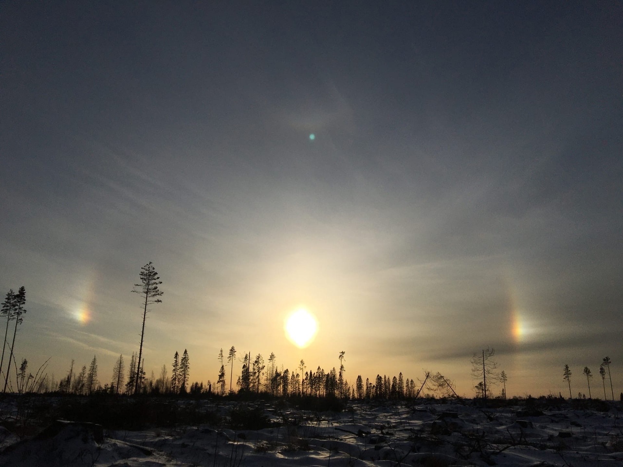 Световое кольцо вокруг Солнца ― этот оптический эффект возникает, когда солнечный свет проходит через кристаллы льда. Они имеют форму вытянутых шестигранных столбиков и находятся в перистых облаках на высоте 7–12 километров, где температура круглый год составляет –20 °C. Гало может появиться не только вокруг Солнца, но и вокруг Луны, и у этого явления около сотни разновидностей. Его видно хорошо как в городе, так и в Ленобласти.