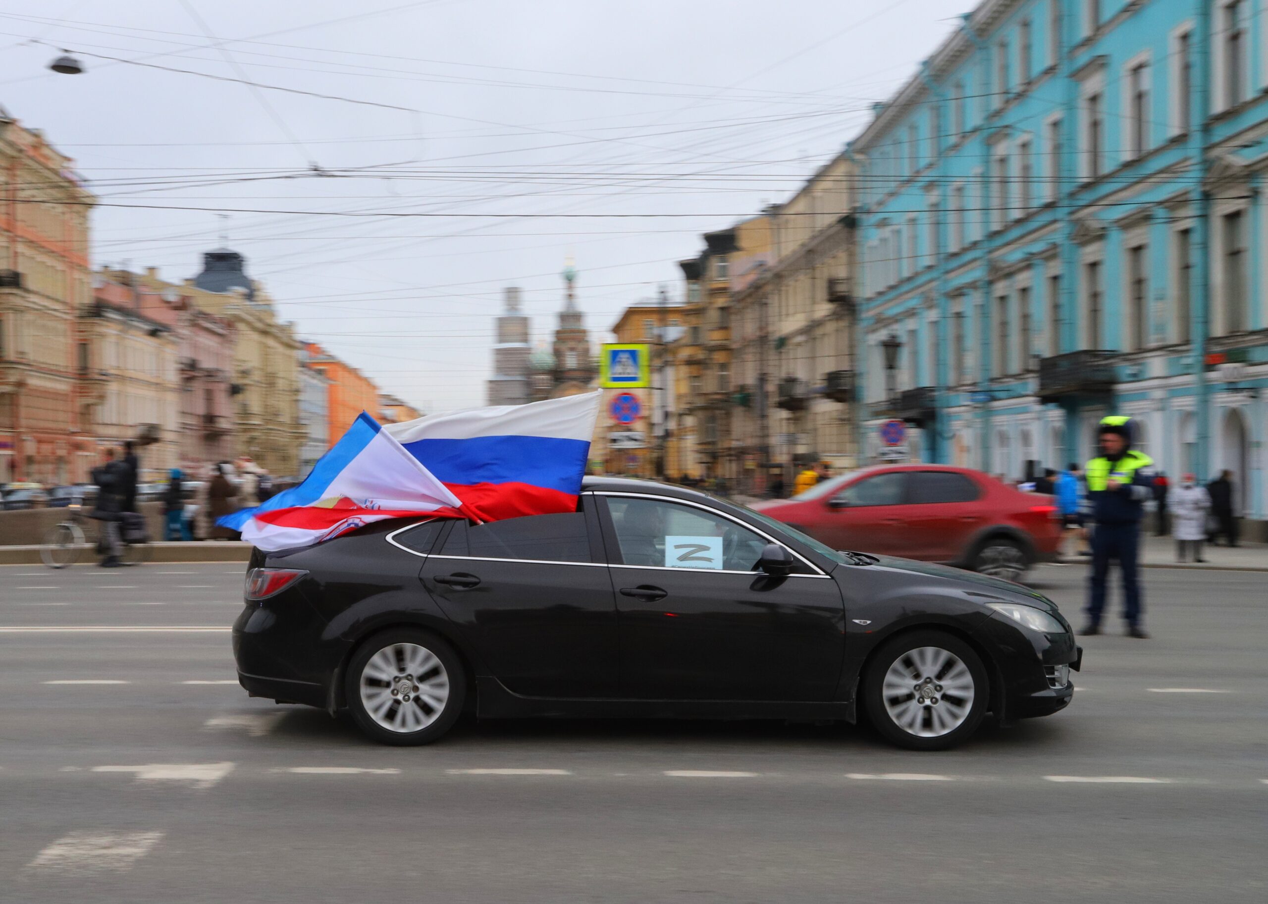 «Киев — наш», автопробег и «Я русский» без Шамана. Как в Петербурге отметили девятую годовщину аннексии Крыма