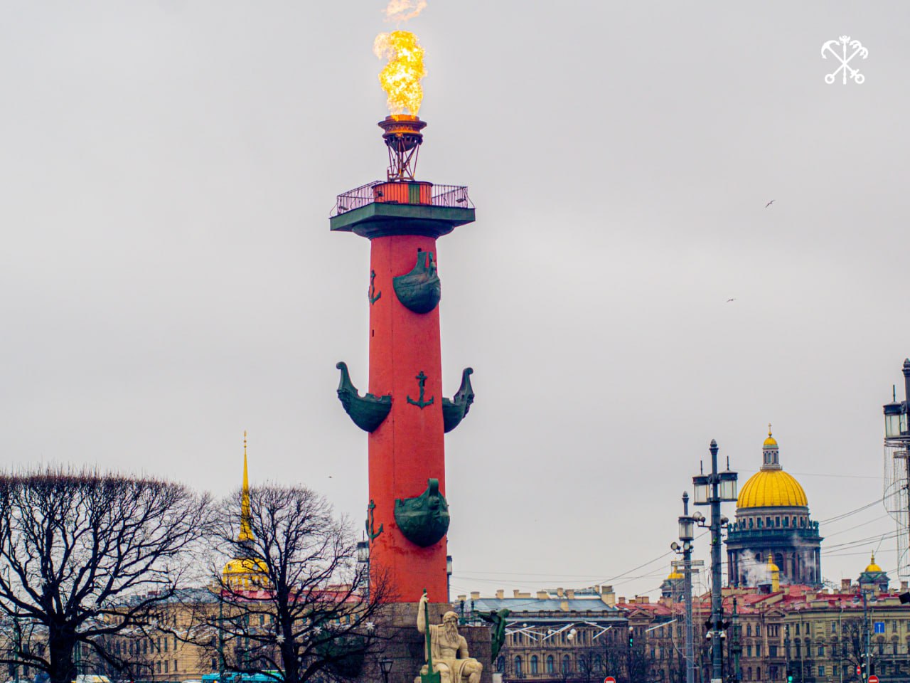 Основное мероприятие прошло на Стрелке Васильевского острова. Днем там зажгли Ростральные колонны.