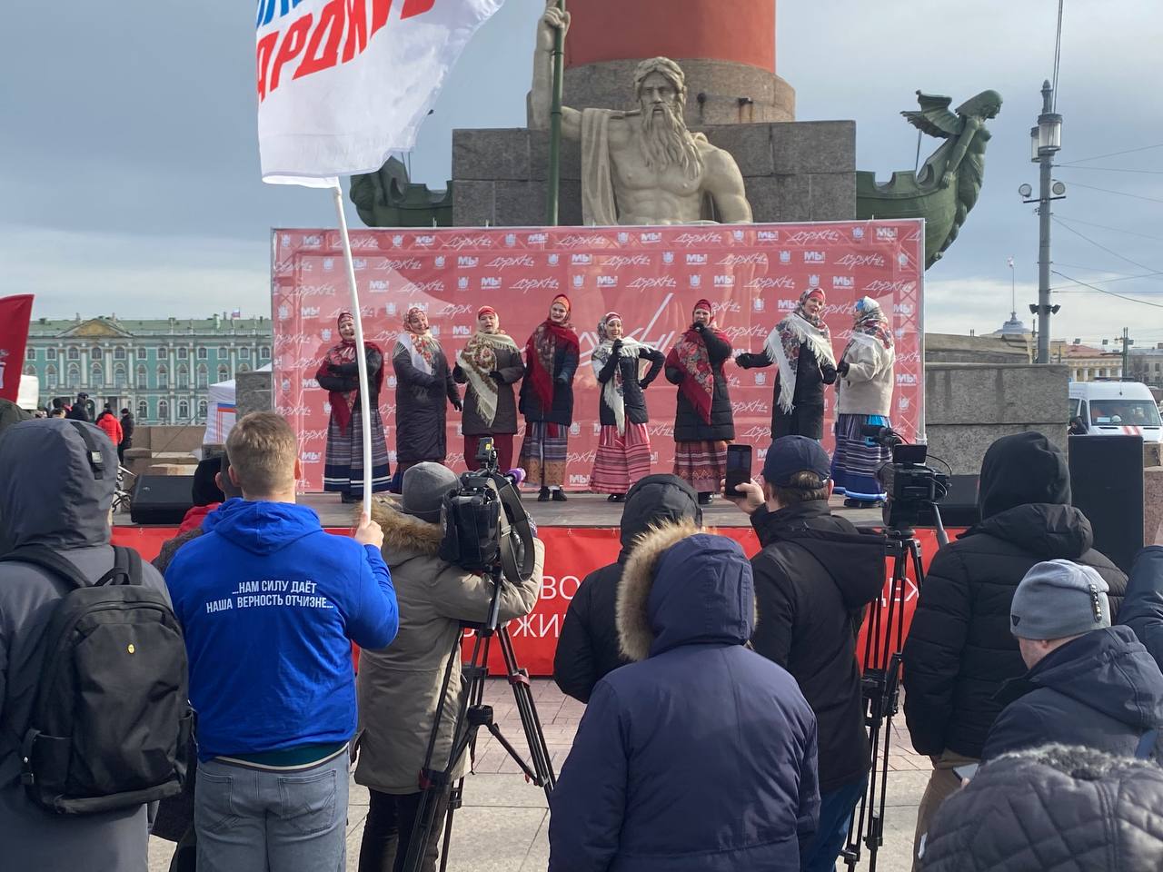 Воспитанница одного из петербургских подростковых центров рассказала «Бумаге», что ее и других подростков обязало прийти руководство. «Я так понимаю, мероприятие посвящено присоединению Крыма. Во мне это не особенно отзывается. На улице еще неприятно из-за холода», — сказала она.