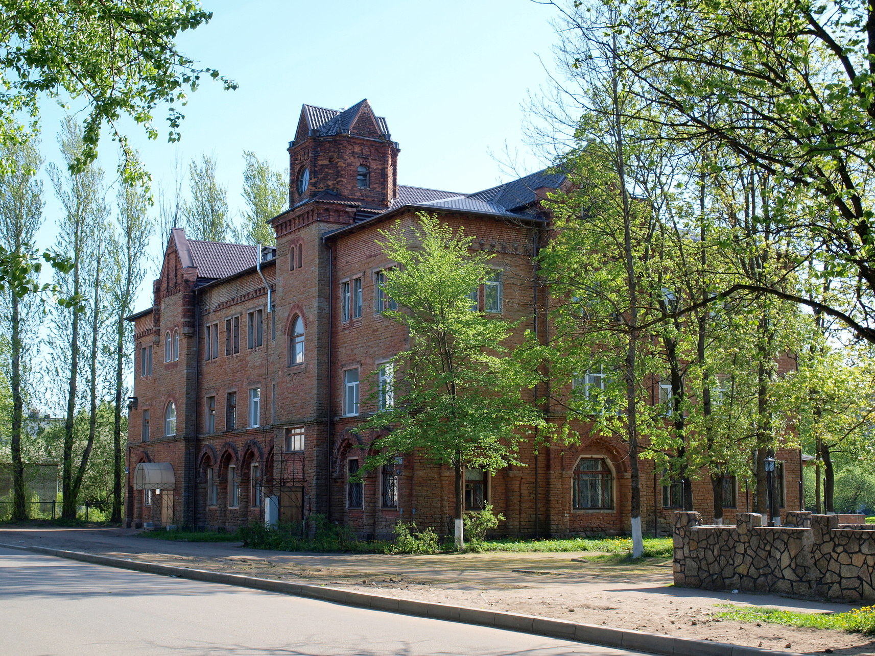 Если вы ценитель стиля модерн, обязательно прогуляйтесь до дома городских учреждений, или как его называют в Кингисеппе, «ратуши». Это здание заложили в 1910 году по проекту того же ямбургского земского инженера Васильева. Идея была в том, чтобы собрать по одному адресу все учреждения уездного города, а освободившиеся здания продать или сдать в аренду. Но работы затянулись — закончили их только в 1932-м. Тем экзотичнее, наверное, выглядело административное здание — в неороманском стиле, с башней и аркадами, отделанными камнем. Во время Второй мировой войны город оказался под германской оккупацией (она длилась с 16 августа 1941-го по 1 февраля 1944-го): в этот период немцы использовали мрачное здание в качестве тюрьмы. После освобождения города здесь разместилась больница, сейчас в ратуше работает районный комитет культуры и другие учреждения.