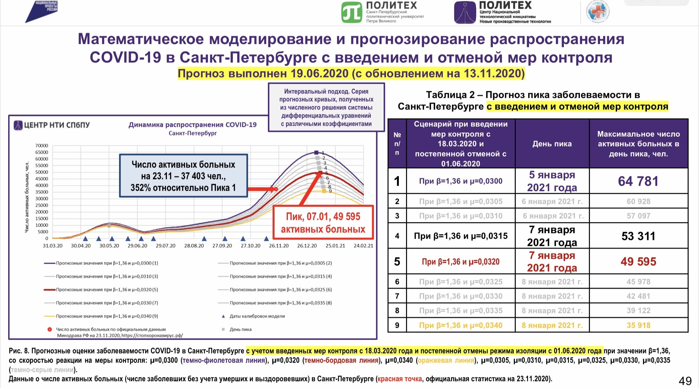 — Такими прогнозами мы не занимаемся, это сопутствующий момент. Наша задача — дать прогноз, какое максимальное количество заболевших ожидается, — желательно с точностью до дней и погрешностью в 5–10 %.