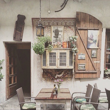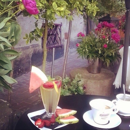 В это заведение очень приятно зайти днем в хорошую погоду. Располагается оно в симпатичном старом дворике Казимежа. Дворик этот не только очень живописный, но и широко известный: именно здесь Стивен Спилберг снимал сцены ликвидации Краковского гетто для «Списка Шиндлера». Несмотря на группы туристов, постоянно снующих туда-сюда в поиске удачных ракурсов для фотографий, цены в кафе приятно удивляют: за чашку вы заплатите не более двух евро.