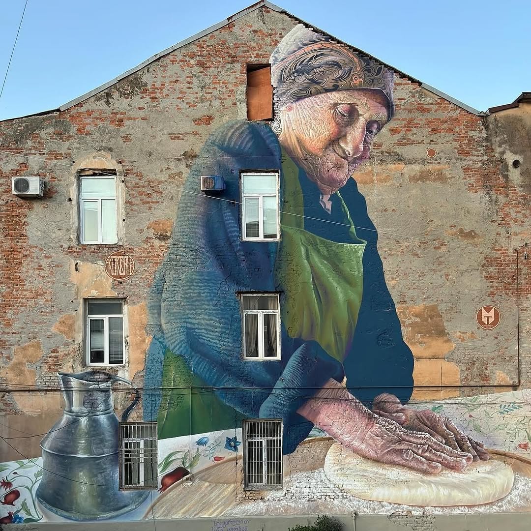 After crossing the bridge, you will find one of Kutaisi’s most famous murals—a woman preparing Imeretian khachapuri. Nearby, you can admire the beautiful Annunciation Church, which was originally built as a Catholic church but became Orthodox in the late 20th century.