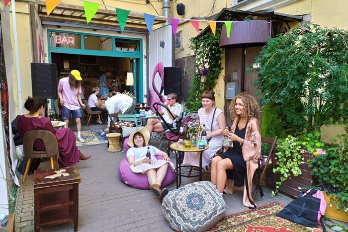 За последние пару лет для меня и моих друзей это место стало знаковым. Заходишь к ребятам в бар, берешь великолепное пиво и выходишь постоять на улице. Болтать с друзьями, читать книгу или делать вид, что читаешь книгу, а на самом деле подслушивать обрывки разговоров и исподтишка глазеть по сторонам. Вокруг тесно стоящих баров кучкуются и говорят о разном очень приятные люди.