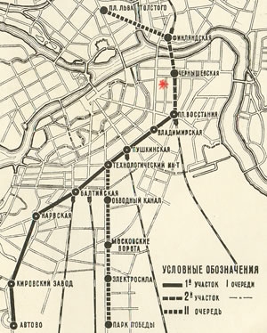 Развивать тему метро в Ленинграде в СССР начали в конце 30-х годов. В 1935 году открылась первая очередь московского метрополитена и успех нужно было закреплять в других городах. Первым счастливчиком стал Ленинград — под влиянием Косыгина к концу десятилетия была составлена первая проектная схема. За дело взялись с жаром, и к концу десятилетия уже была готова первая проектная схема. И хотя сходство с финальным вариантом в ней угадывается без труда, не обошлось и без отличий. Например, между «Нарвской» (которую в то время еще планировали назвать «Сталинской») и «Технологическим институтом» появлялись две новые станции, а пересадки с линии на линию находились не в тех местах, к которым сейчас привыкли уже все жители города.