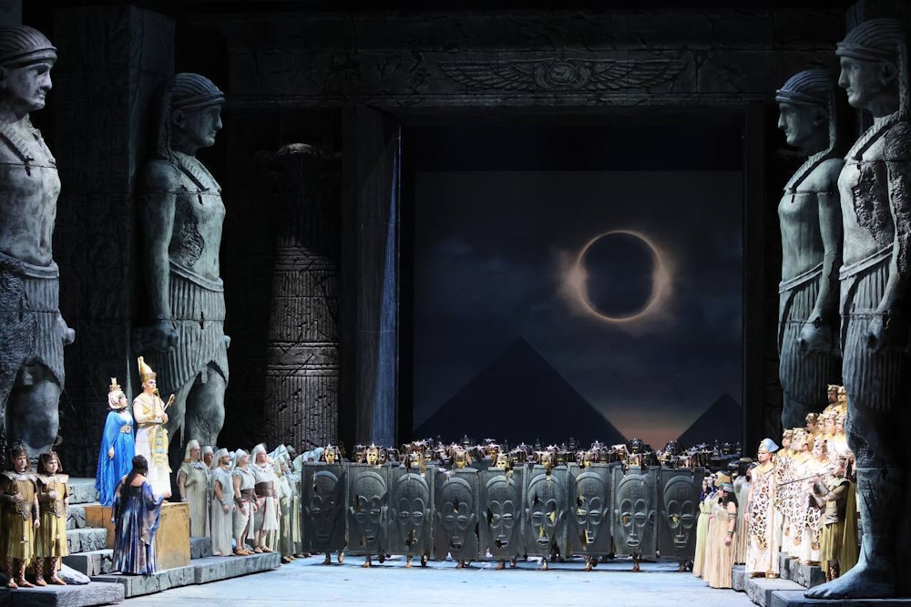 В своей интерпретации «Аиды» дель Монако перенес действие в тот период, когда Египет был завоеван царями Куша (древнее государство в северной части современного Судана), и там воцарилась XXV династия «черных фараонов». Визуальное решение постановки — доминирование черного цвета — вдохновлено в том числе археологическими находками (статуями фараонов из вулканического камня). Спектакль отличается кинематографичной динамикой и эффектными декорациями, в постановке задействовано более 300 артистов, а финальная сцена триумфа вдохновлена… московским Парадом Победы на Красной площади 1945 года. Результат этого смешения разнообразных идей можно увидеть на Новой сцене Мариинского.