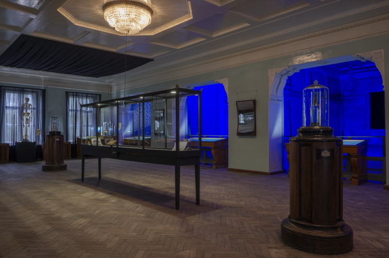 «Школа Павлова» на втором этаже здания Старой лаборатории в Колтушах продолжает сайнс-арт-экспозицию «Новая антропология»: новую выставку делала та же команда под началом куратора Ирины Актугановой. Современные художники — Людмила Белова, Марина Алексеева и другие авторы — дополнили исторические предметы и интерьеры Старой лаборатории видео-артом и инсталляциями. Например, на веранде можно увидеть сервиз с цитатами физиолога, в кабинете транслируют видео с выступлением Павлова, а еще одну комнату посвятили космической медицине. Более подробный рассказ о проекте читайте в материале «Бумаги».