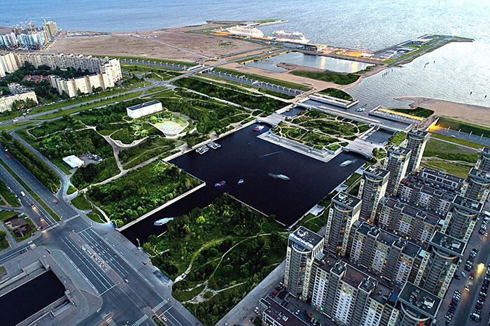 Кроме того, градозащитники опасаются, что строительство уничтожит остатки «Морского фасада Петербурга» — проекта, начатого еще в середине XX века. В «морской фасад» входит и территория парка, и окружающие ее советские здания.