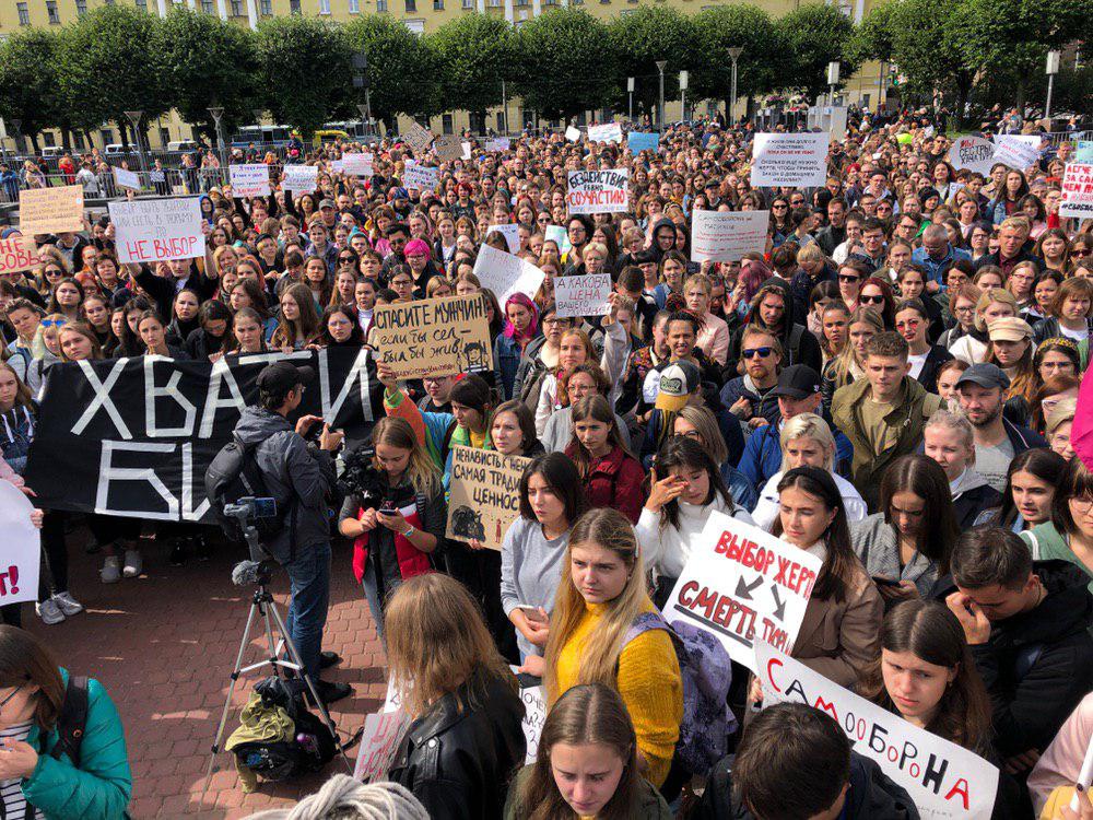 На митинг в поддержку сестер Хачатурян в Петербурге пришли больше 1000 человек. Одно фото с площади Ленина