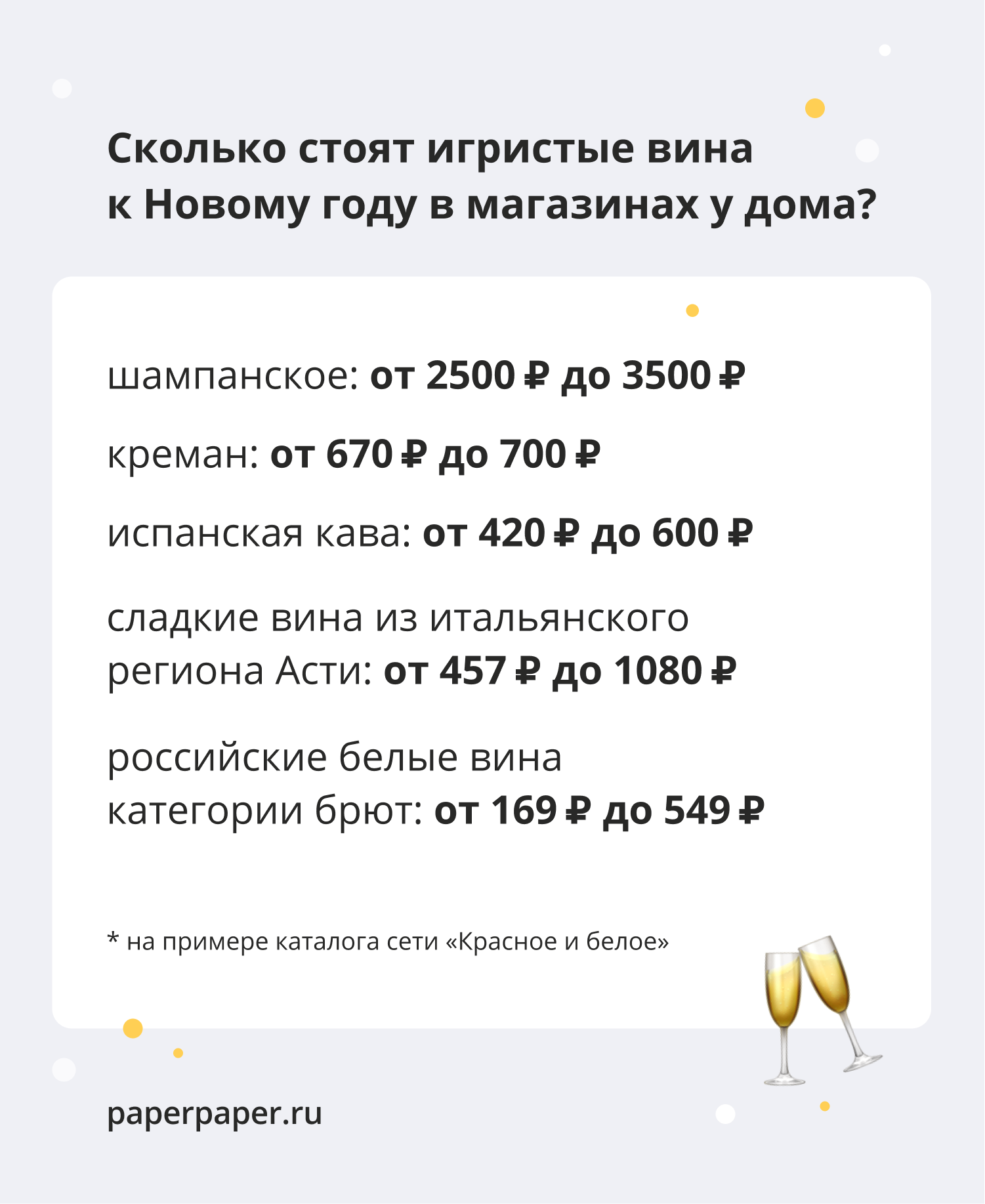 В сетевых магазинах зарубежные игристые вина тоже представлены, хотя их ассортимент и снизился по сравнению с прошлым Новым годом. Например, в сети «Красное и белое» можно купить три вида шампанского, два кремана и четыре варианта испанской кавы. В других сетях выбор может быть шире — например, в магазинах «Винлаб» покупателям предлагают 11 игристых вин из Шампани по цене от 1 999 до 7 999 рублей.