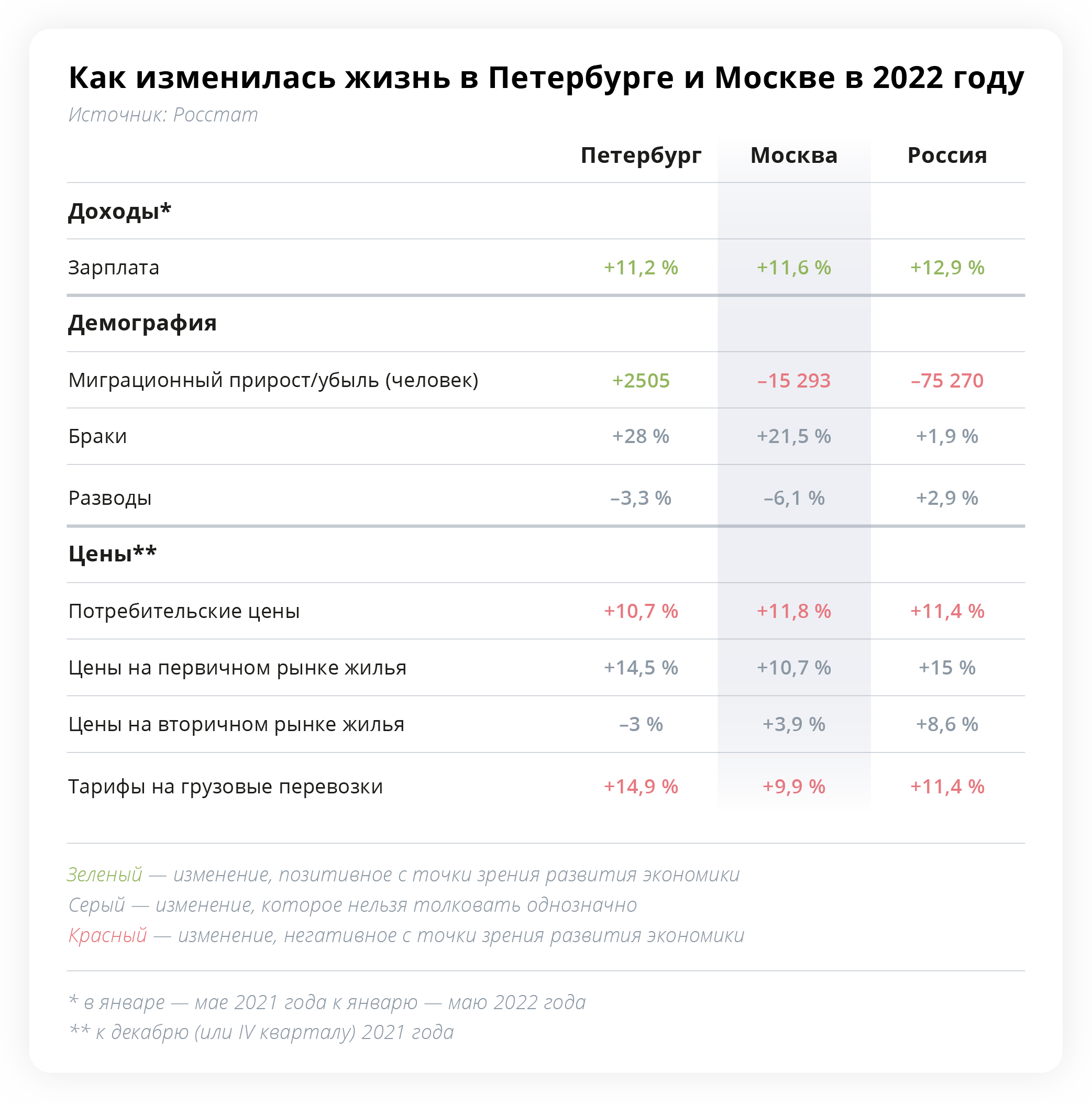 «Бумага» собрала главное, на что стоит обратить внимание в показателях Петербурга, и сравнила эти данные с московскими и среднероссийскими.