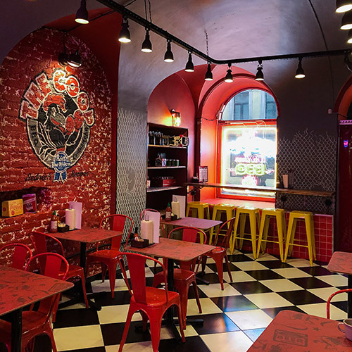 Новое заведение от команды Chuck Family, открывшей Chuck, Holy Ribs и Krang Pizza. В основе меню — курица гриль. Здесь ее добавляют в салаты, бургеры и даже в вафельный рожок, как мороженое. Можно заказать и целую тушку — ее принесут насаженной на пивную банку. Из алкогольных напитков предлагают пиво в американском стиле, в том числе собственного изготовления, бурбон и настойки из него. Из безалкогольных — компот в пятилитровой банке, которую открывают перед гостем.