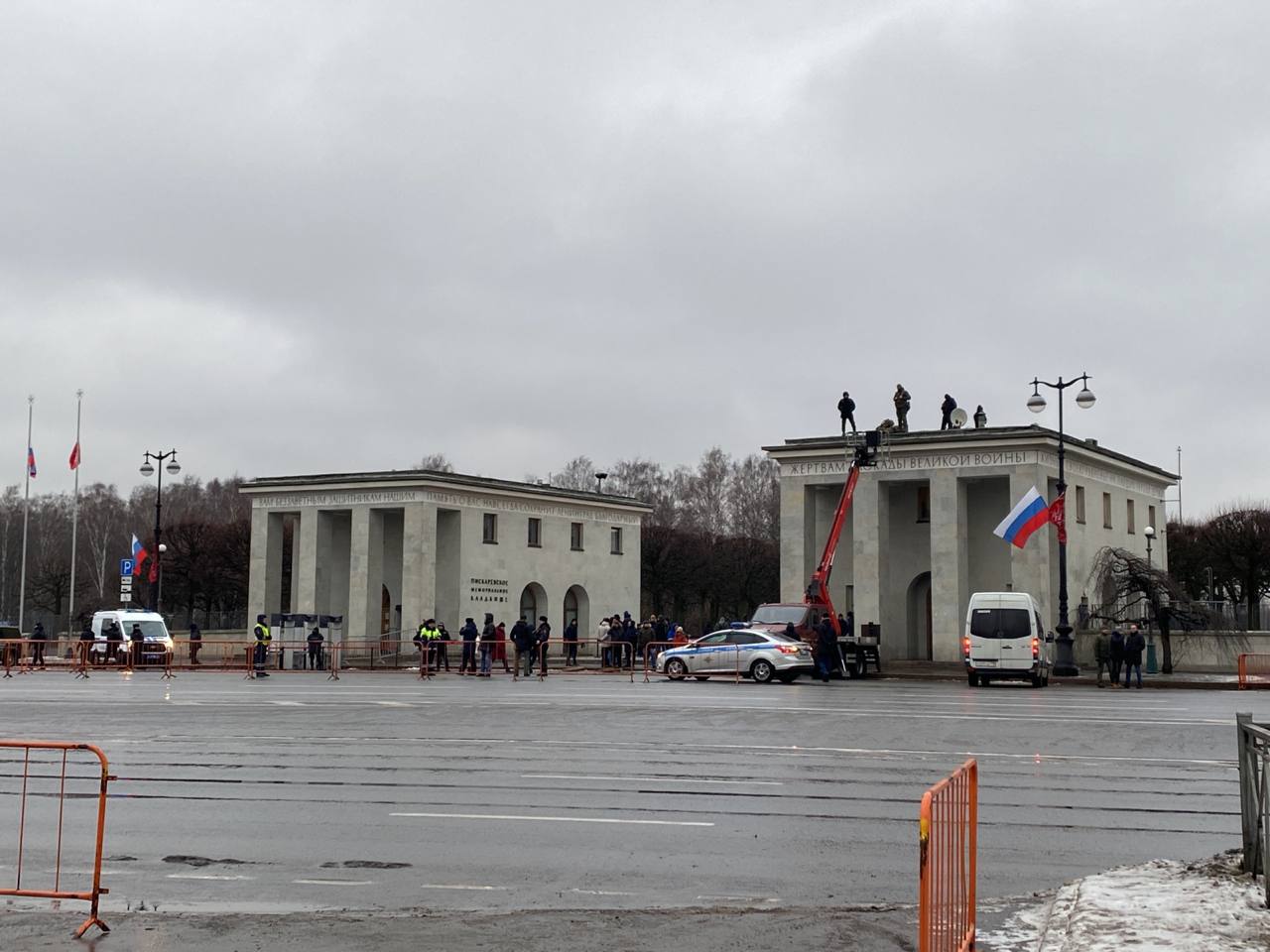 Помимо этого, перед приездом Путина территорию вокруг Пискаревского кладбище оградили, а на входе поставили рамки металлодетектора. На крышах соседних домов были снайперы, рассказал «Бумаге» один из присутствовавших там силовиков. «Снимать нельзя, лучше их [снайперов] не дергать лишний раз», — заявил патрульный.