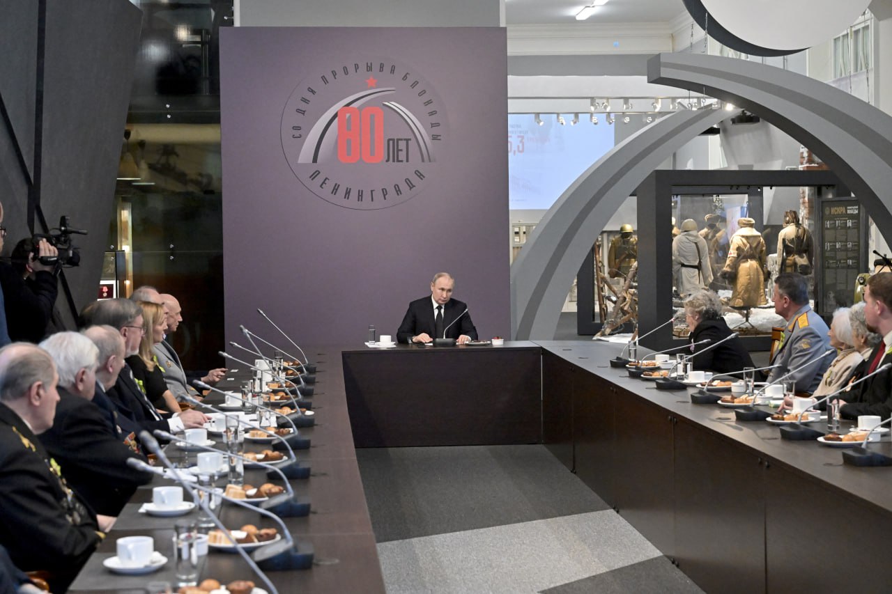 В музее Путин встретился с ветеранами, жителями блокадного Ленинграда и «представителями общественных патриотических объединений», пишут в пресс-службе Кремля. Их, по данным «Сирены», тоже просили сдать тесты на ковид.