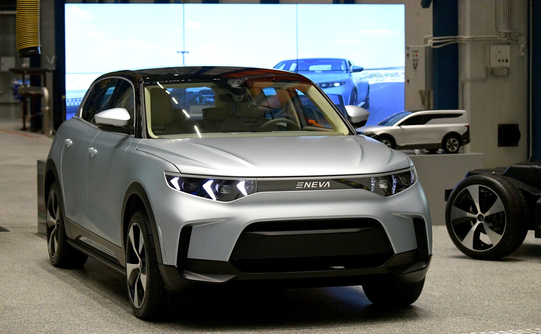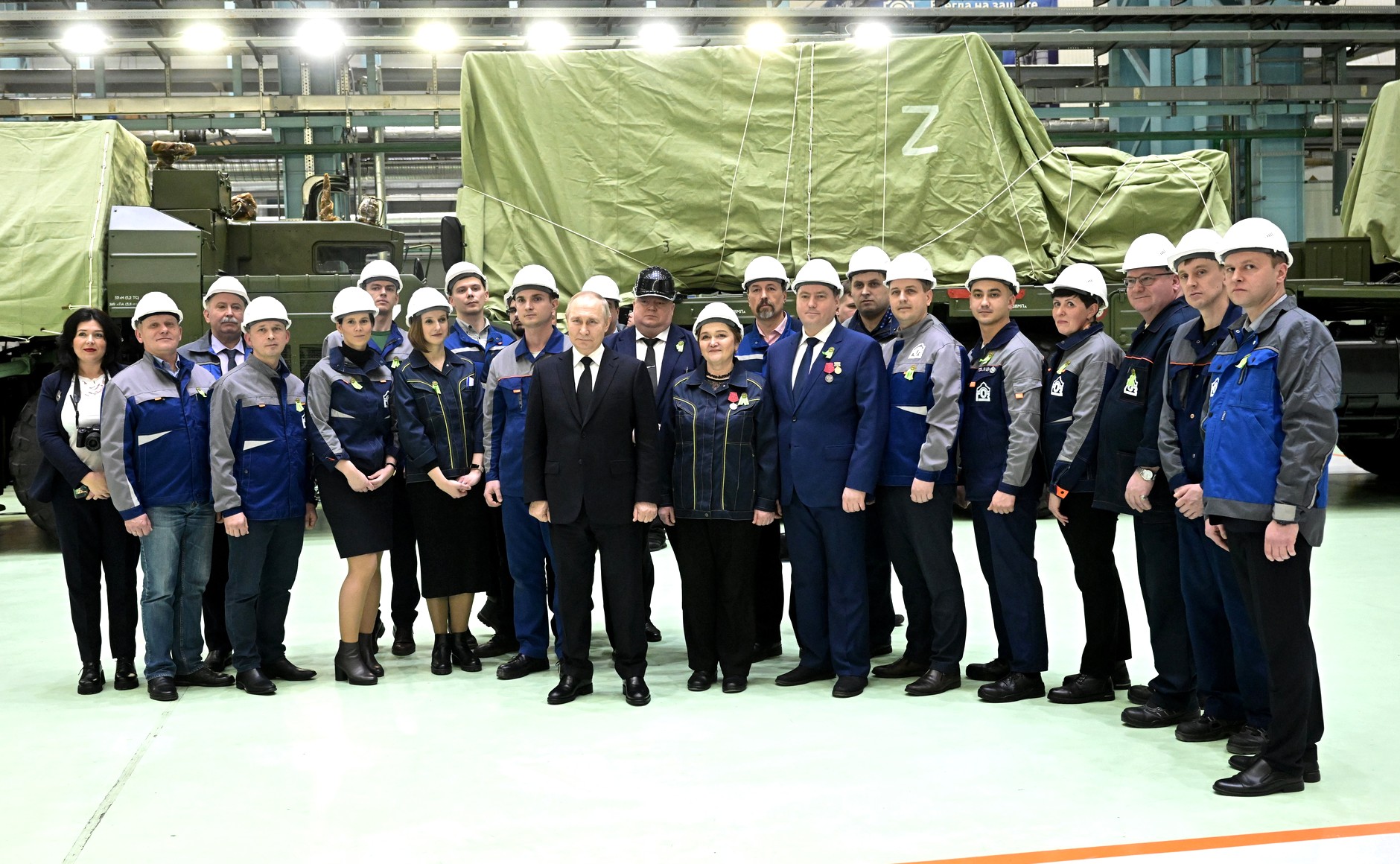 На заводе Путину показали отечественный «электрический кроссовер E-NEVA». Президент не отдалялся от сотрудников Обуховского завода и даже сфотографировался с ними.