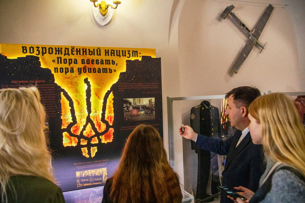 Это постоянная экспозиция петербургского музея Минобороны, она открылась 22 февраля 2023-го. В экспозиции представлены первый флаг самопровозглашенной ДНР, скульптура «Цветок войны», изготовленная из гильзы 23-миллиметровой пушки, и униформы российских и украинских солдат. Есть на выставке и «трофеи» в виде «националистической» литературы, оружия и шевронов. А также предметы, «доказывающие прямое участие США и стран Запада в конфликте», — например, фрагменты снарядов американской установки HIMARS.