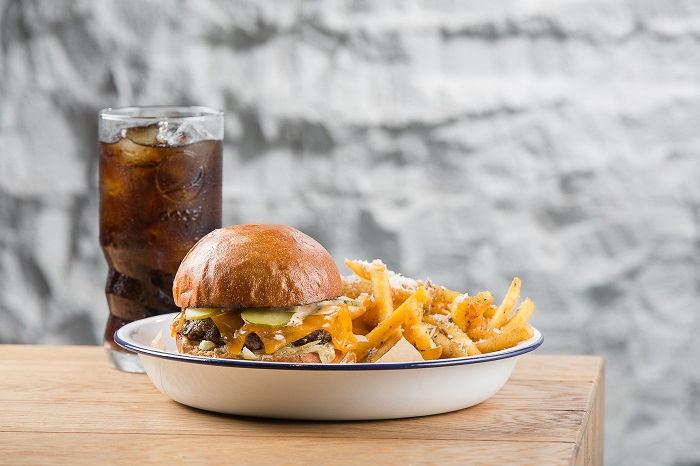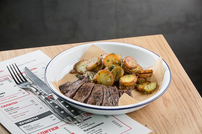 В меню — бургеры с говяжьей котлетой или межреберным мясом, хот-доги, сэндвичи с ростбифом, митболы и салат коул-слоу. Все блюда можно заказать с собой. Готовят в «Забегаловке» из такого же мяса, что и в ресторанах Hitch, — молодых бычков из Брянской области. Булочки для бургеров выпекают в собственной пекарне.