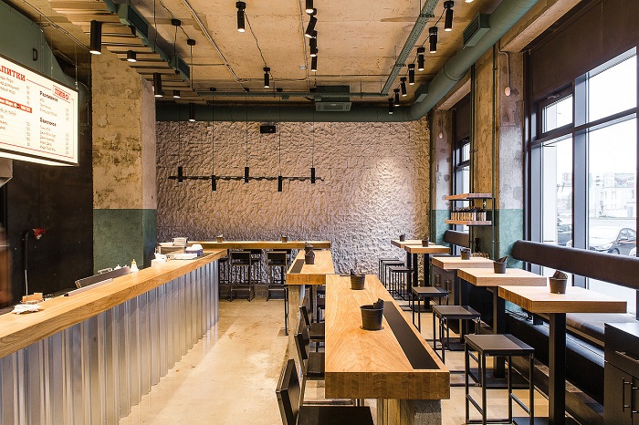 «Забегаловка» располагается по соседству с другим проектом сети — мясным рестораном Hitch на проспекте Медиков. В заведении 30 посадочных мест и открытая кухня. Заказ делается у стойки, подать блюдо обещают в течение 10 минут.