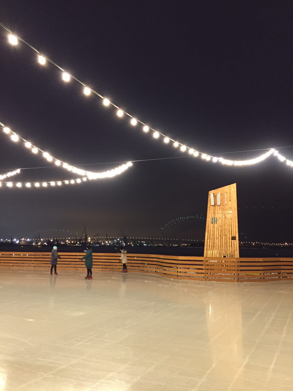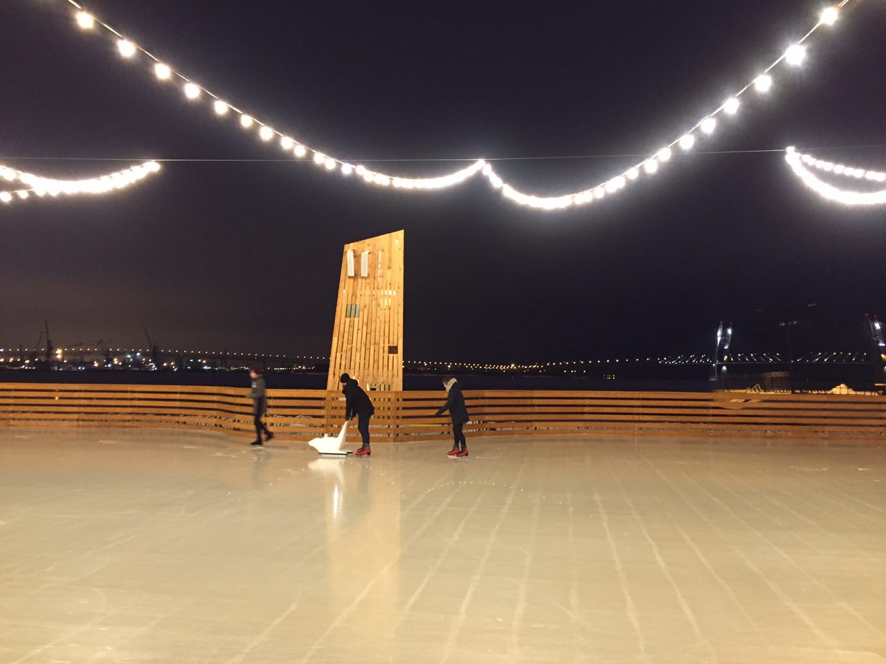 В «Севкабель Порту» тестируют каток в тысячу квадратных метров у воды. Посмотрите, как уютно он выглядит