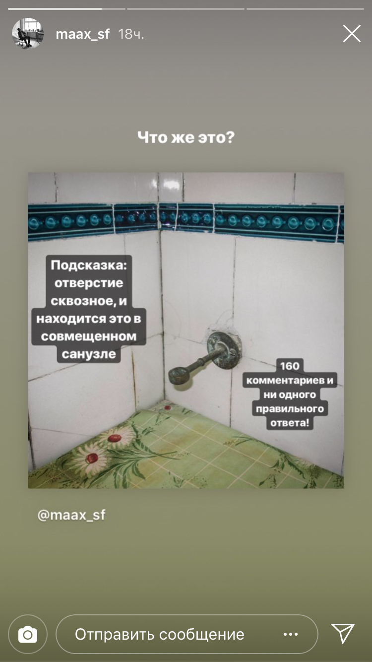 Когда среди 160 первых комментариев не обнаружилось правильного ответа, Косьмин уточнил, что предмет находится в санузле.