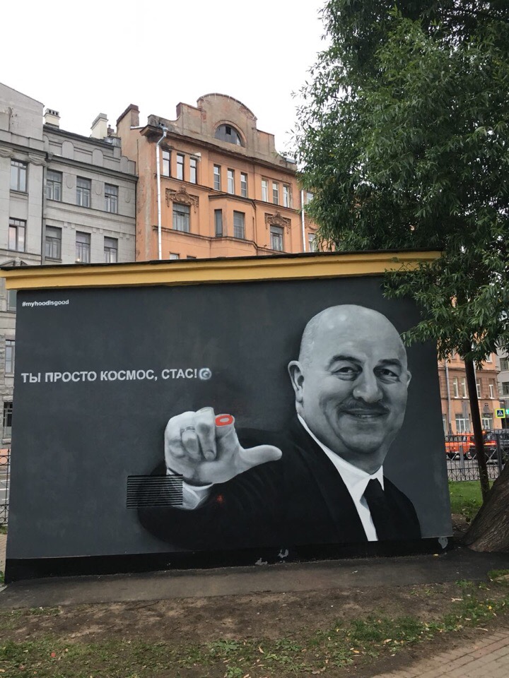 Граффити с тренером Станиславом Черчесовым появилось в середине июня. Его нарисовали художники из объединения HoodGraff.