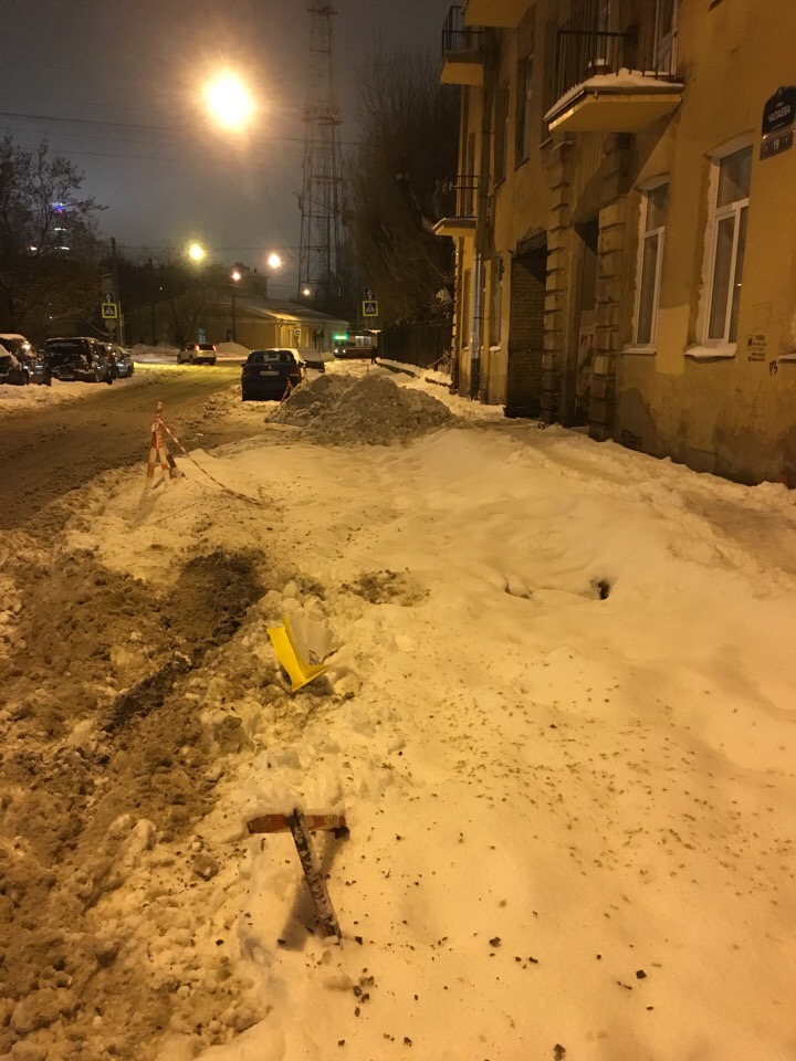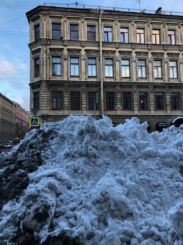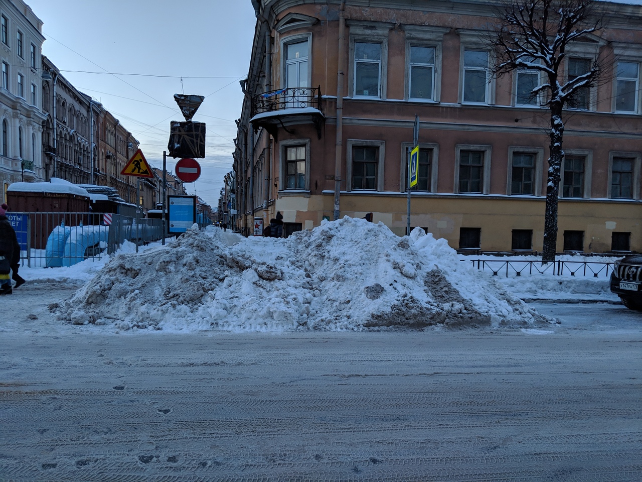 Например, подобная куча снега перекрыла пешеходный переход неподалеку от здания комитета по благоустройству.