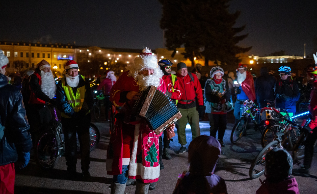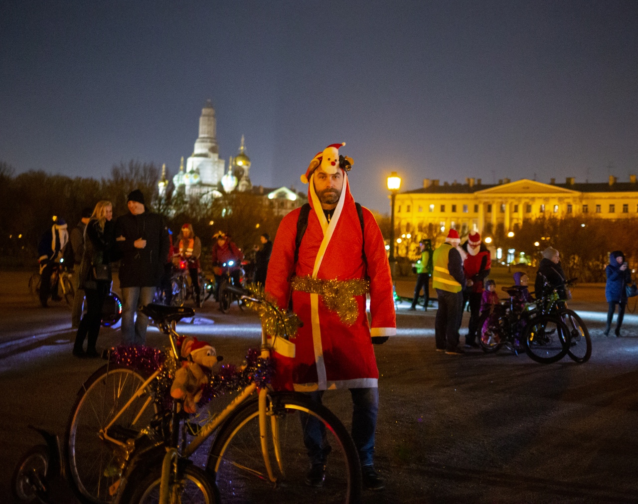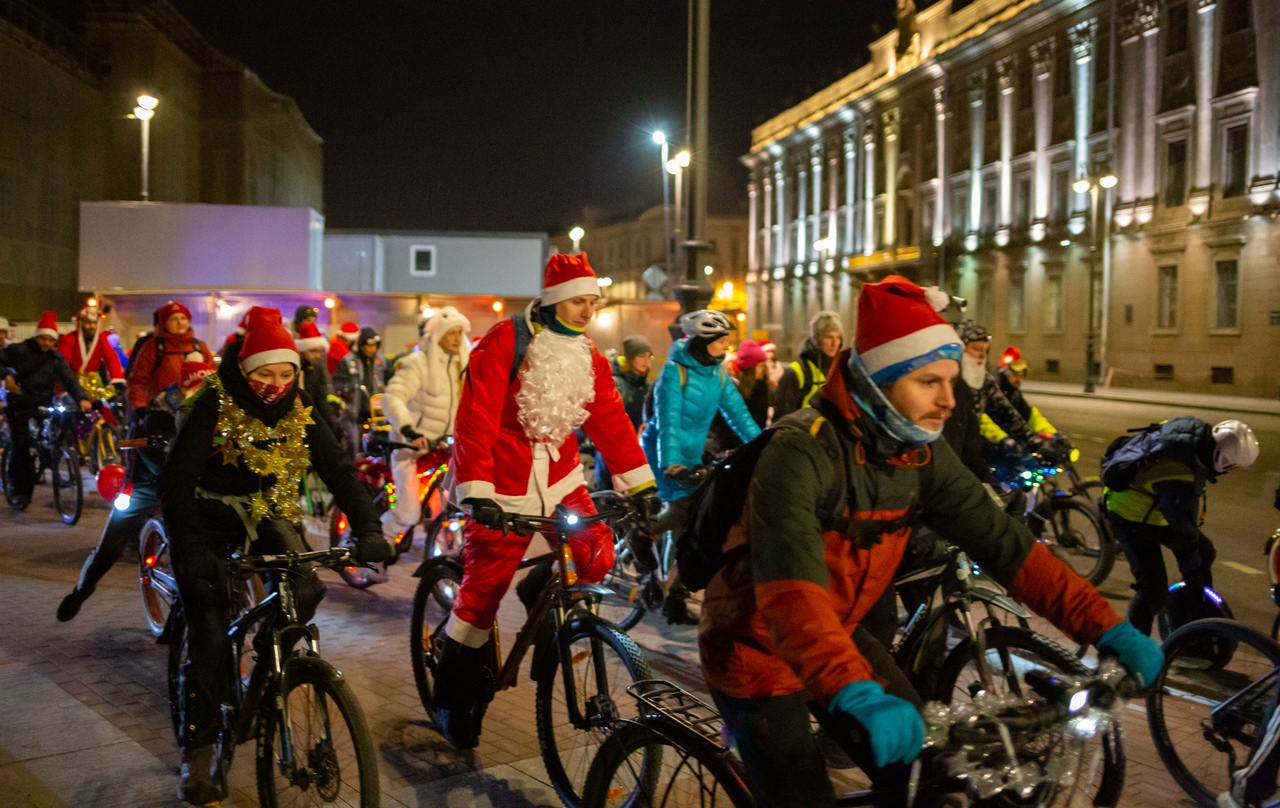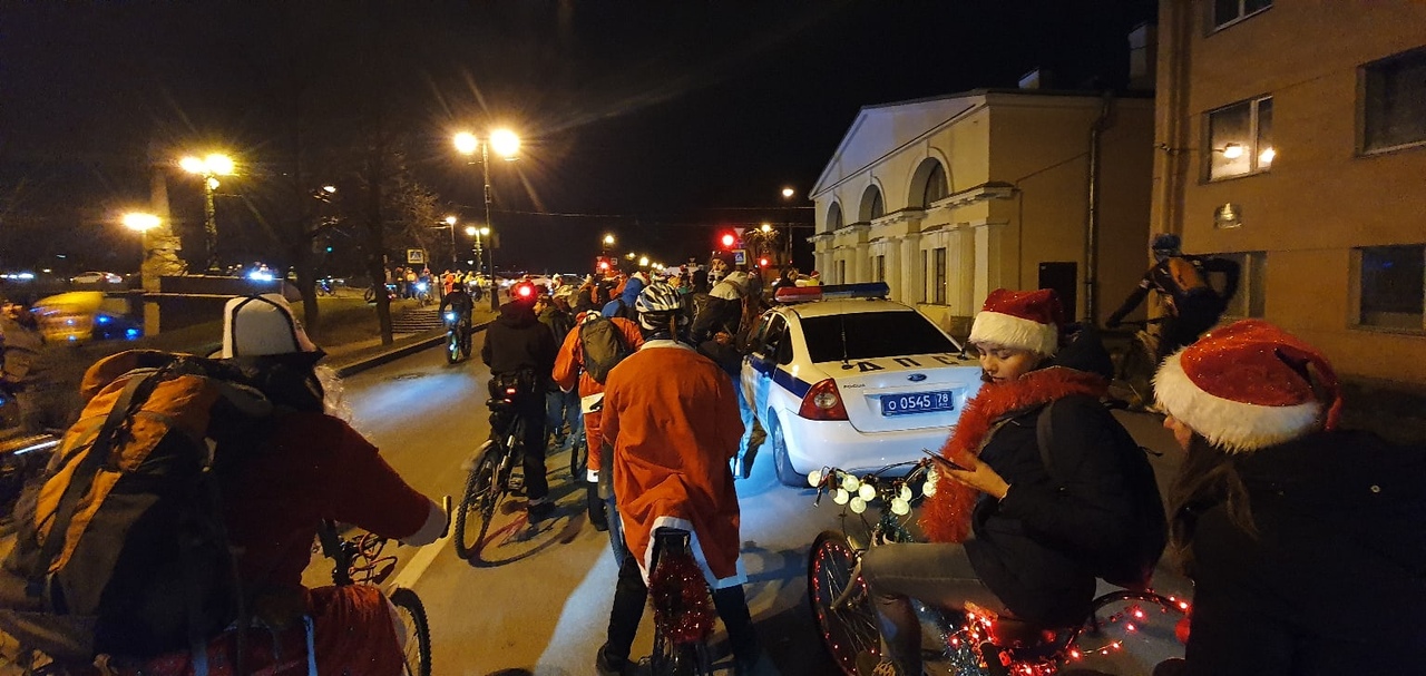 Участники велопарада собрались в 18:00 на Марсовом поле в новогодних костюмах. Они проехали по Петроградской стороне до Каменного и Крестовского островов, а после вернулись к месту встречи через «Чкаловскую» и «Горьковскую». Условием участия был подходящий костюм сказочного персонажа.