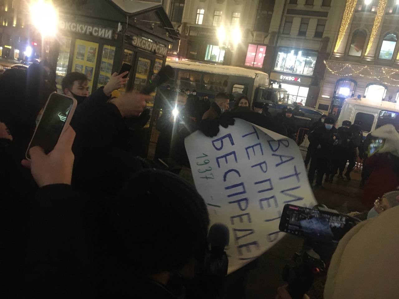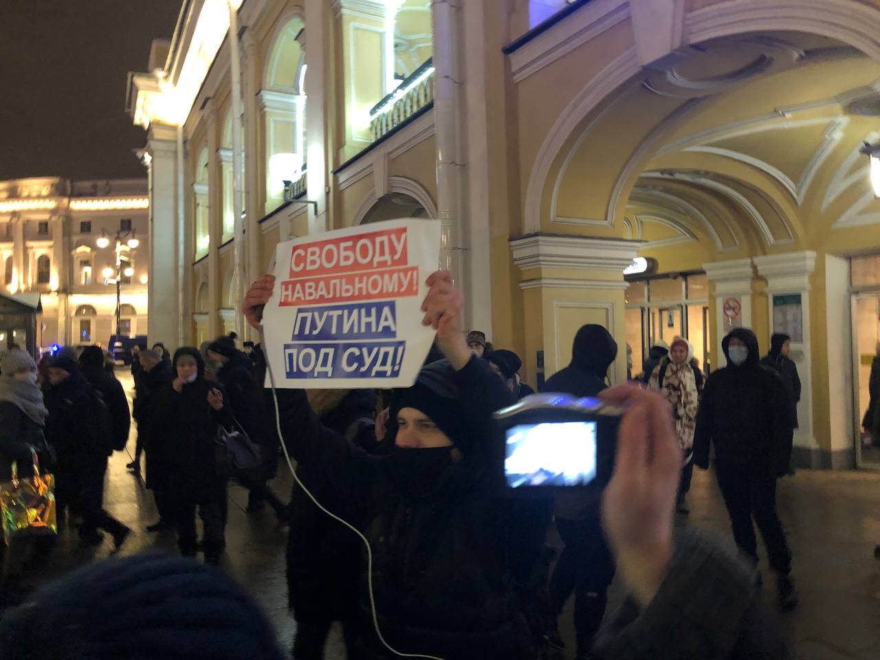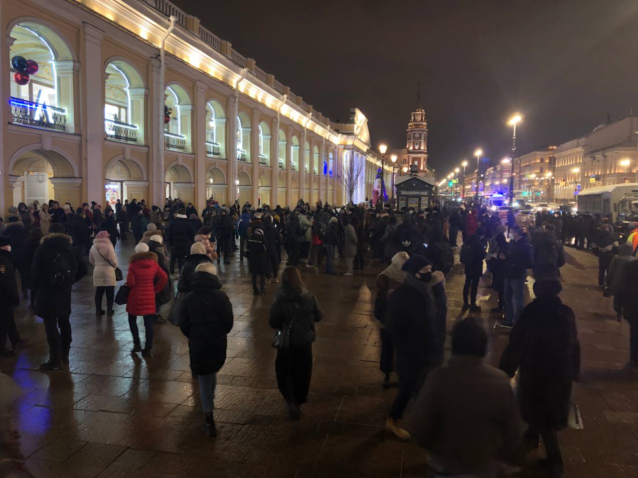 У Гостиного двора проходят пикеты в поддержку Алексея Навального. Полиция задерживает их участников.