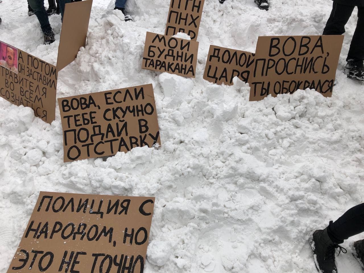 «Русский бунт, осмысленный и мягкий» — и другие плакаты на митинге 31 января
