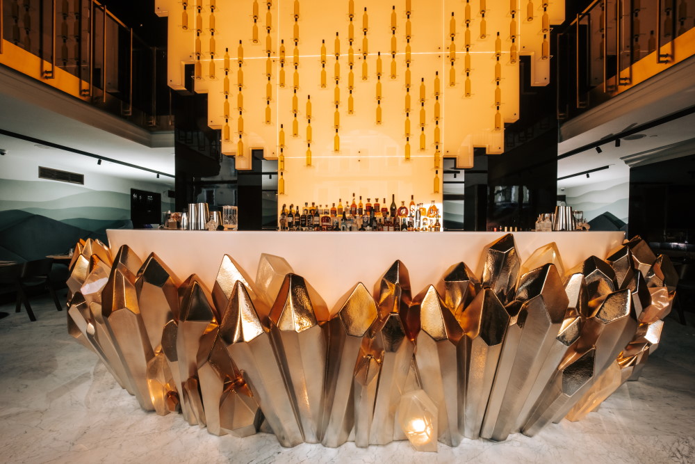 Исторические интерьеры оформили с использованием драгоценных и полудрагоценных камней и минералов из Сибири и с Урала: мрамора, кварцита, оникса и других. Заведение разделили на несколько зон: кафе открыто с 12:00, ресторан — с 17:00 до 1:00.