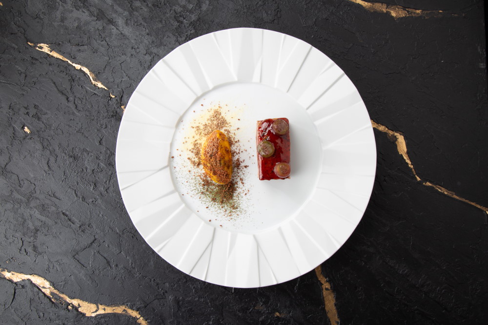 За десерты в новом заведении отвечает шеф-кондитер Андрей Баглай, работавший в «Полном балете», Cococouture и других заведениях. Для большой кондитерской витрины он разработал десерты в эстетике самоцветных камней, для вечернего ресторана — позиции с редкими травами и необычными сочетаниями.