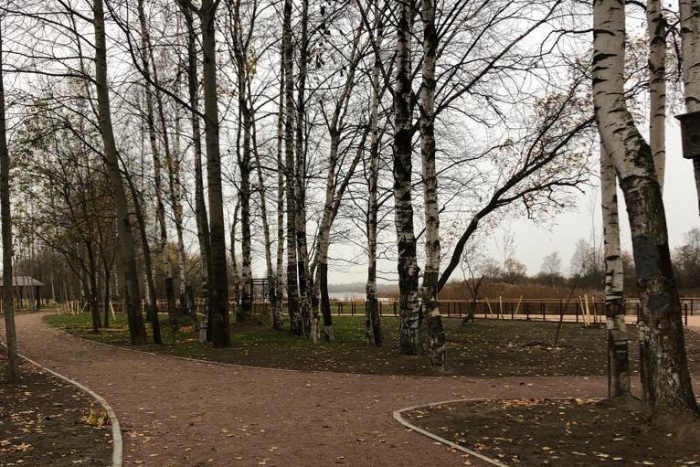 Тропа дополняет уже имеющиеся пешеходные маршруты на берегу реки, сообщают в Смольном. Для обустройства пешеходной зоны использовали природные материалы. В сквере установили беседки, игровые и спортивные площадки.