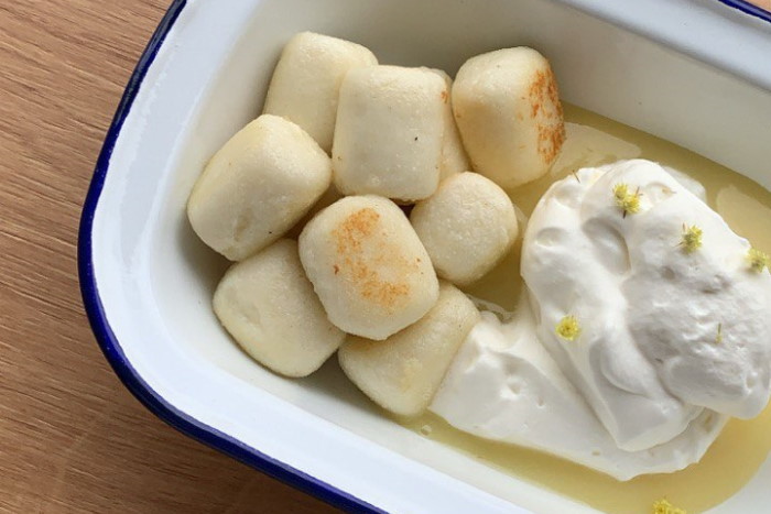 В кофейне действует небольшое авторское меню от бренд-шефа Ксении Стародубцевой. Гостям предлагают ленивые вареники из творога с лимонным курдом и сливками, авокадо на хлебе с лососем, лимонные кексы и другие позиции. Позднее меню расширят: в него включат мороженое и комбучу собственного производства.