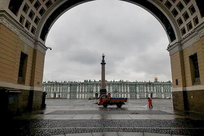 Дворцовую площадь перекрыли незадолго до начала несогласованной акции в поддержку Навального. К Зимнему дворцу пригнали автозаки, а также уборочную технику — так что площадь моют уже несколько часов.