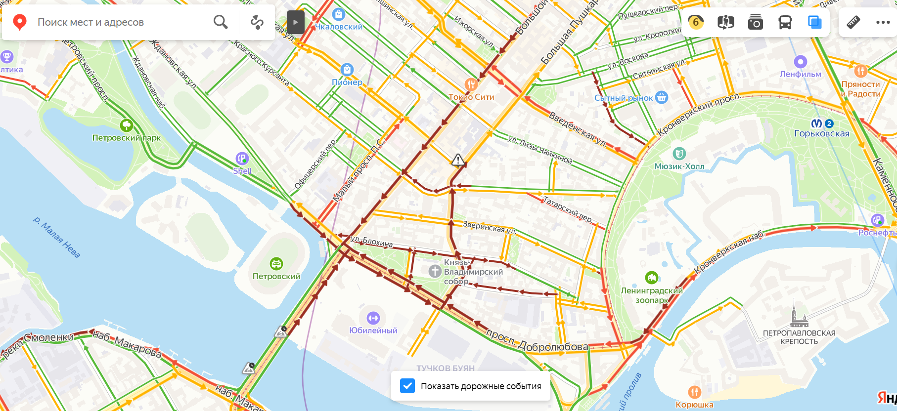 Обновлено в 20:02: движение по Большой Пушкарской перекрыто, сообщают очевидцы. Судя по картам «Яндекса», пробки скопились на улице Блохина, в переулке Нестерова и на проспекте Добролюбова.
