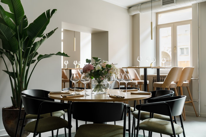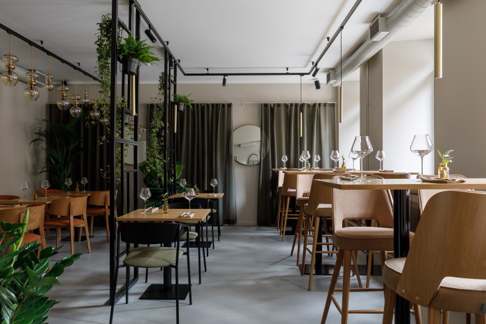 Интерьер сделали светлым, залы украсили зеленью. Сейчас заведение работает в техническом режиме: попасть туда можно только по приглашению, а меню еще может поменяться. С июня Grain откроет двери для всех, следить за новостями ресторана можно в инстаграме.