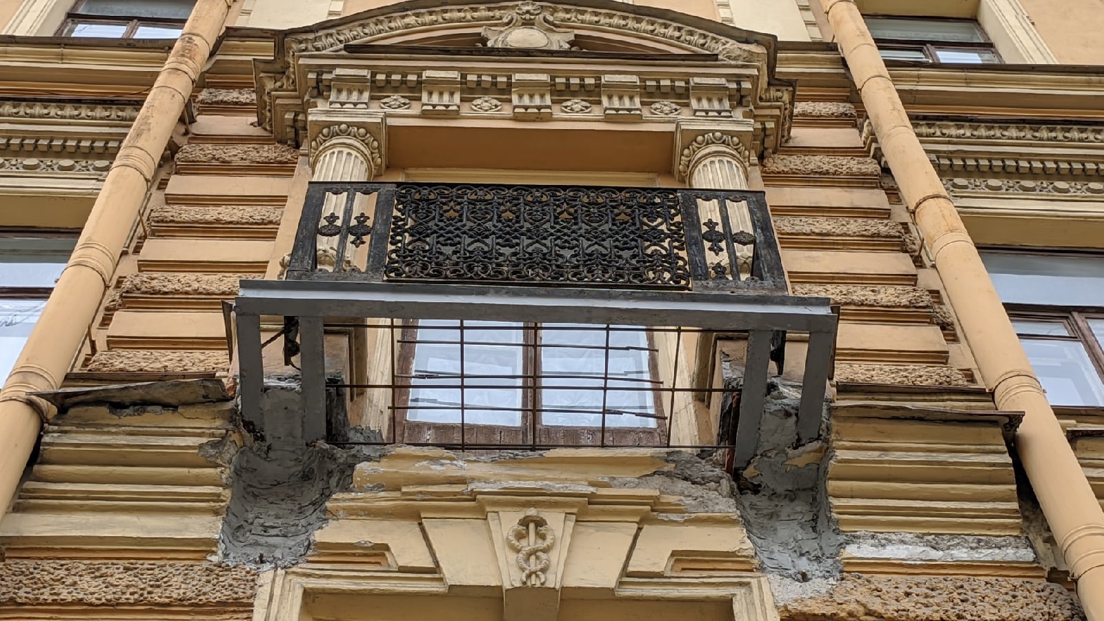 В исторических домах в Центральном районе Петербурга демонтируют балконы. Работы ведут на Литейном проспекте, в Ковенском переулке, рассказали «Бумаге» читатели.