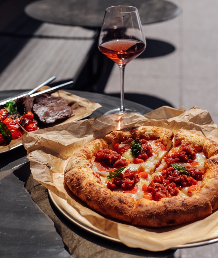 Кроме того, гостям предлагают салаты, панини, супы, пиццу и пасту, а также десерты: тирамису, семифредо и другие. В винной карте собрали десятки наименований, многие из которых разливают по бокалам — например, кьянти и грузинское оранжевое. Также в барной карте есть восемь коктейлей, крепкий алкоголь и безалкогольные напитки.