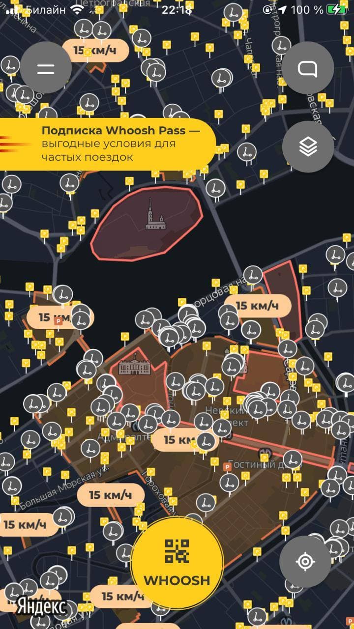 Запрещенные для поездок зоны выделены красным цветом и в приложении Whoosh, рассказали «Бумаге» в пресс-службе компании. В желтых зонах на карте приложения предельная скорость — 15 км/ч. При этом в сервисе не связали введение красных зон с решениями СК и Смольного. «Красные зоны там, где строго пешеходные зоны и очень много пешеходов. Часто сама территория не хочет допускать самокаты», — сказали в Whoosh.