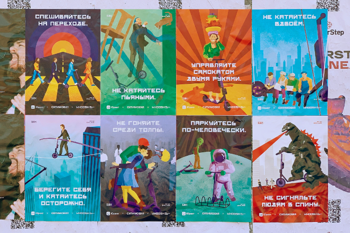 Плакаты созданы в рамках информационной кампании, которую ведут кикшеринги Urent, «Ситимобил» и Whoosh, рассказали «Бумаге» в пресс-службе Urent. «Наша задача – повышать культуру безопасного вождения, в том числе и в рамках таких проектов», — говорит основатель кикшеринга Whoosh Дмитрий Чуйко. Созданные постеры называют «первым этическим кодексом для пользователей электросамокатов».
