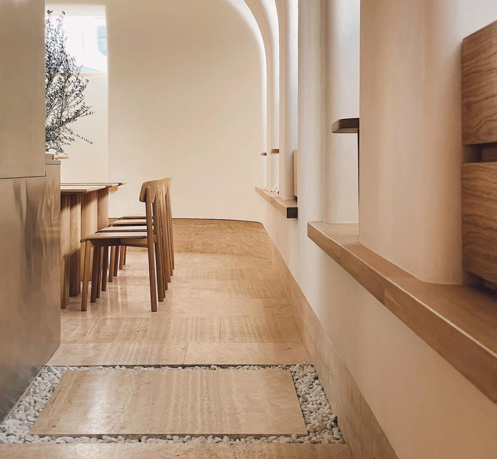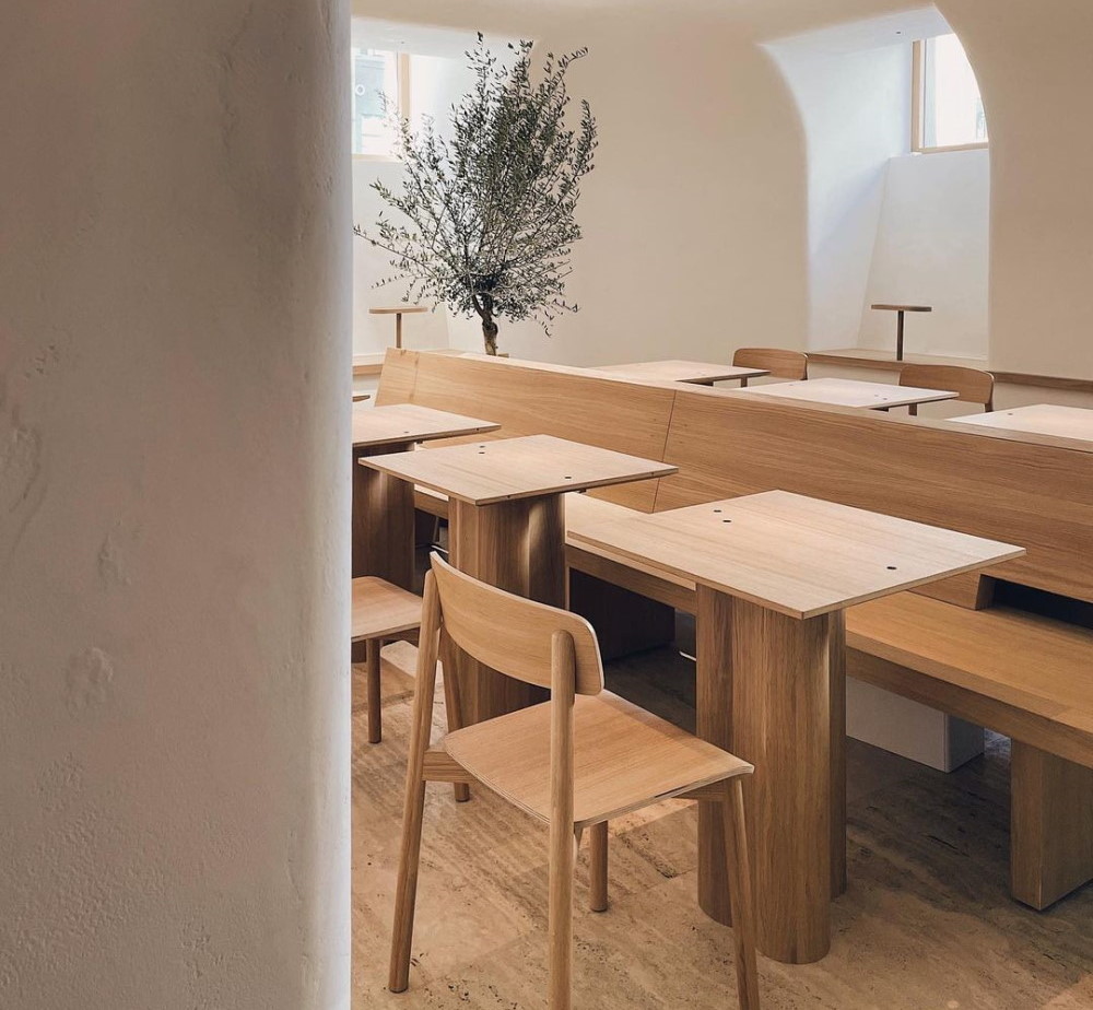 Интерьер нового заведения разработало DA bureau. Помещение сделали светлым, в его оформлении использовали много дерева, а у входа высадили небольшую березу.