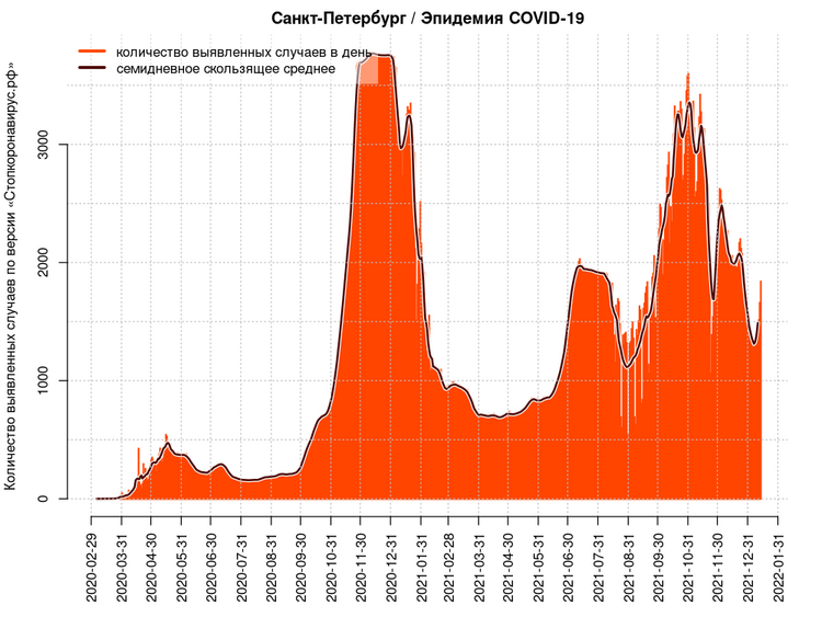Исследователь также отметил, комментируя официальную статистику: «Растем, судя по всему, уже быстрее, чем падали. В ближайшие дни можно ждать более 2 тысяч новых случаев в день». В четверг, 13 января, зафиксировано 1839 новых случаев.