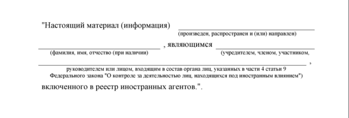 Теперь граждане, признанные «иноагентами», будут обязаны ставить новую плашку перед публикациями. Вместо «данного сообщения» они должны будут писать «настоящее сообщение». При этом размер шрифта плашки должен вдвое превышать размер шрифта самого поста, а ее цвет — быть контрастным по отношению к фону.