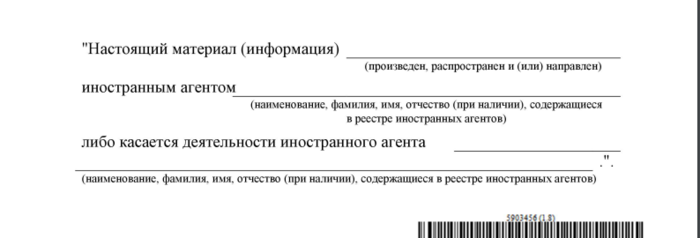 Правительство утвердило новую плашку «иноагентов». Теперь маркировка будет начинаться с «настоящего материала»