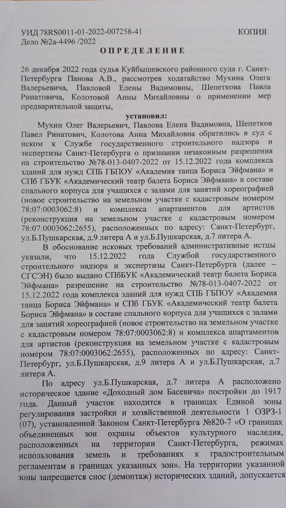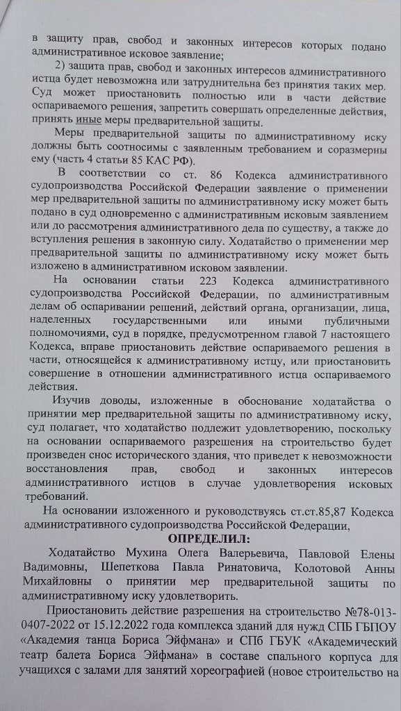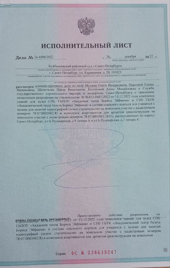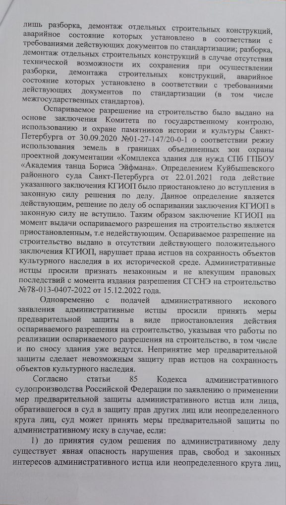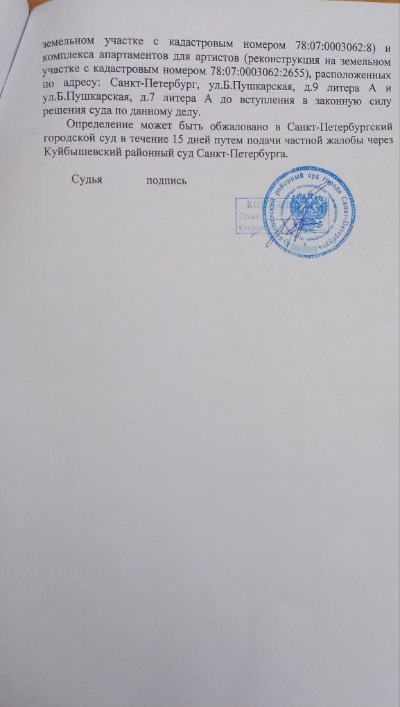 В связи с этим Куйбышевский суд признал разрешение комитета по государственному контролю, использованию и охране памятников истории и культуры (КГИОП) недействительным и приостановил его.