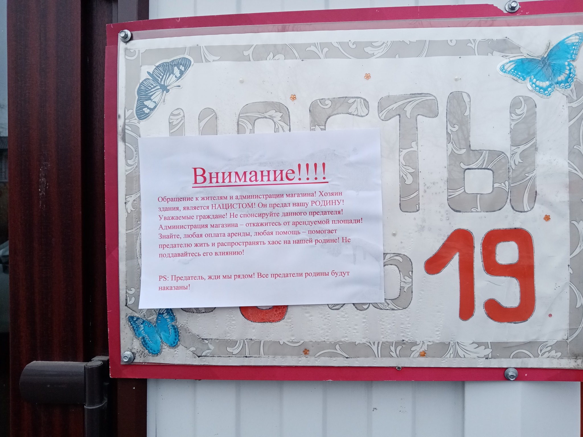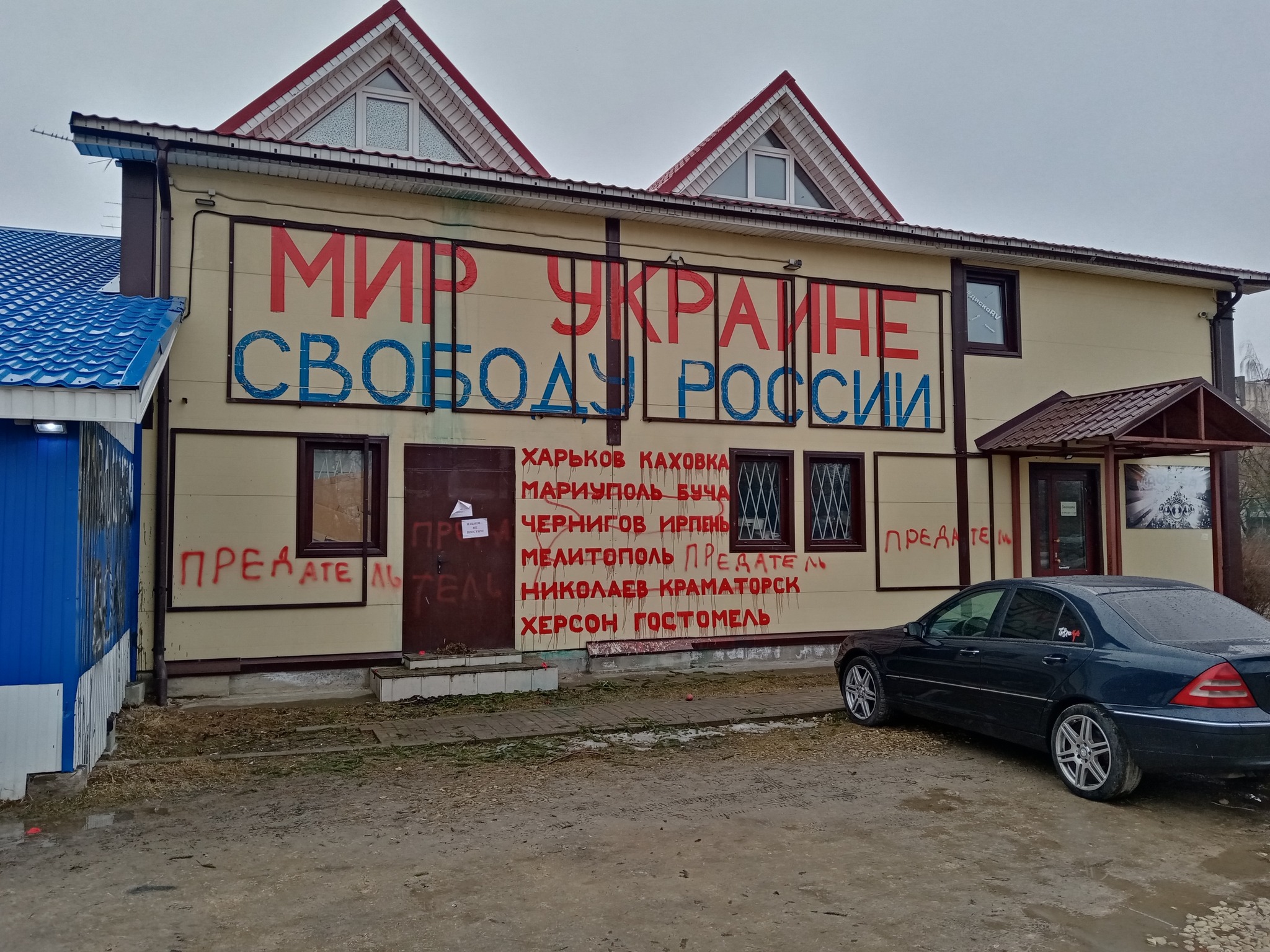 На «оппозиционном» магазине в Ленобласти вандалы написали «предатель». Владелец годами размещает на фасаде протестные и антивоенные лозунги