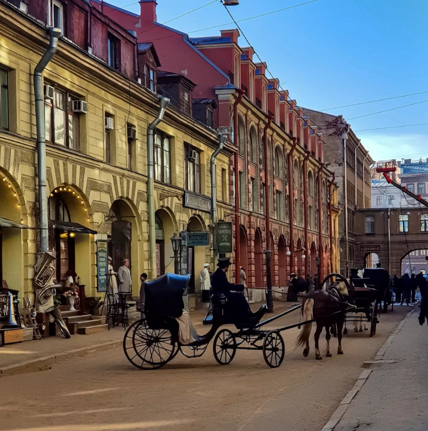 В Петербурге продолжают снимать «Шаляпина». В Банковском переулке заметили ретровывески и повозку
