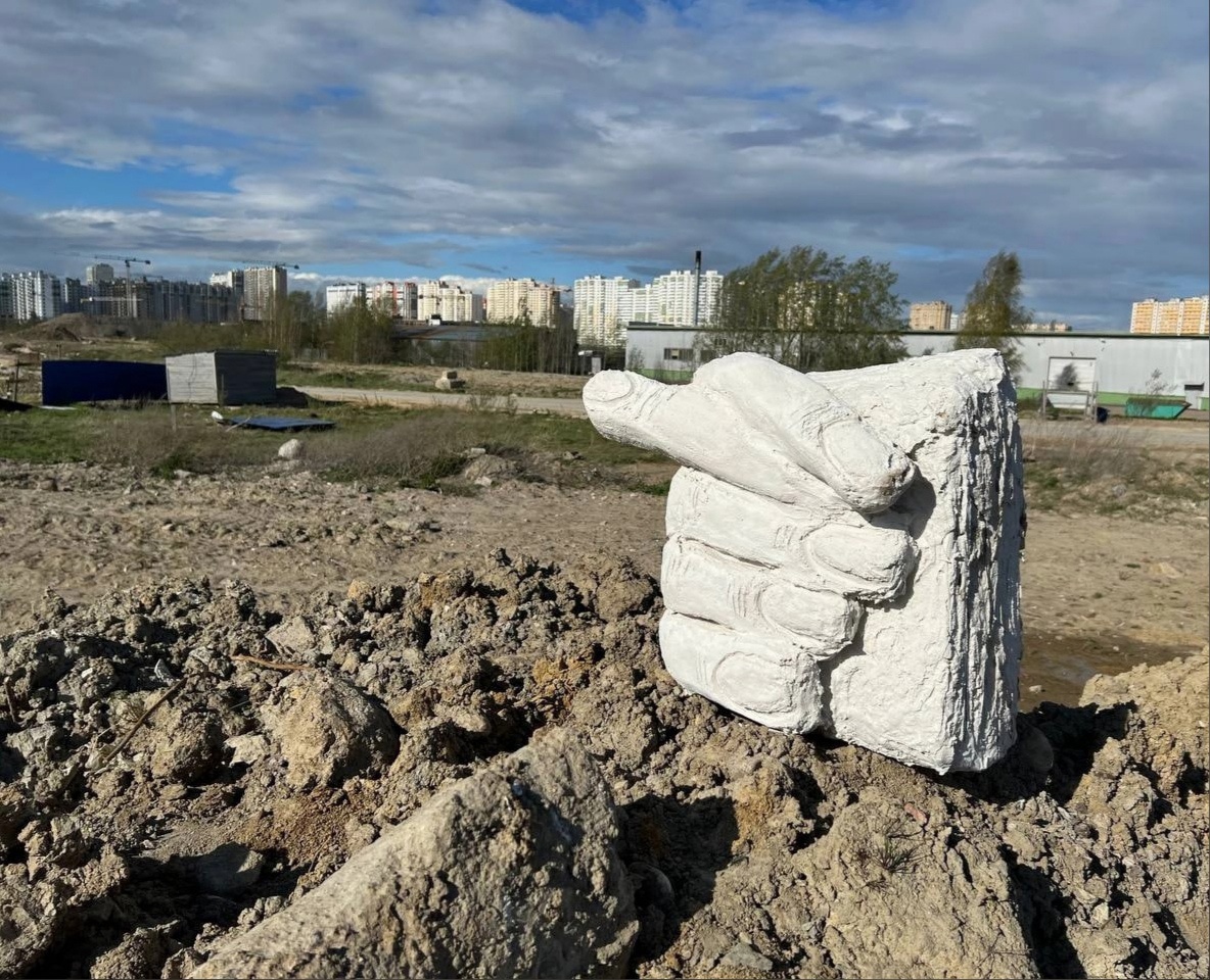 В Шушарах появилась скульптура в виде кукиша — на пустыре, где обещали обустроить парк